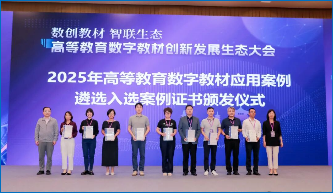 在杭州举办的高等教育数字教材创新发展生态大会上,大会主办方向各“2025年高等教育数字教材应用案例”颁发了证书。